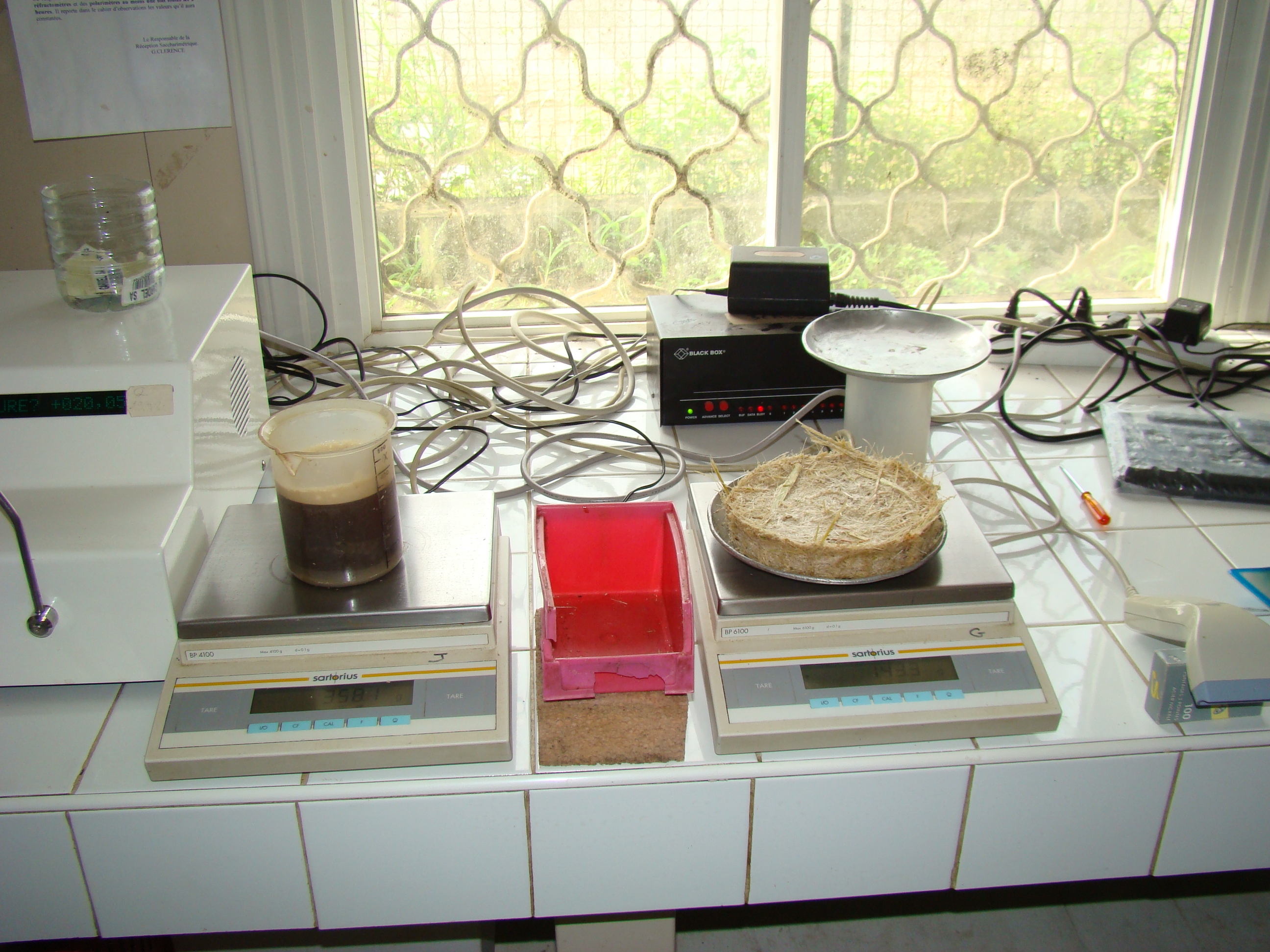 Jus de canne et gateaufibreux d'un échantillon pour analyse au centre de réception de Sainte Rose