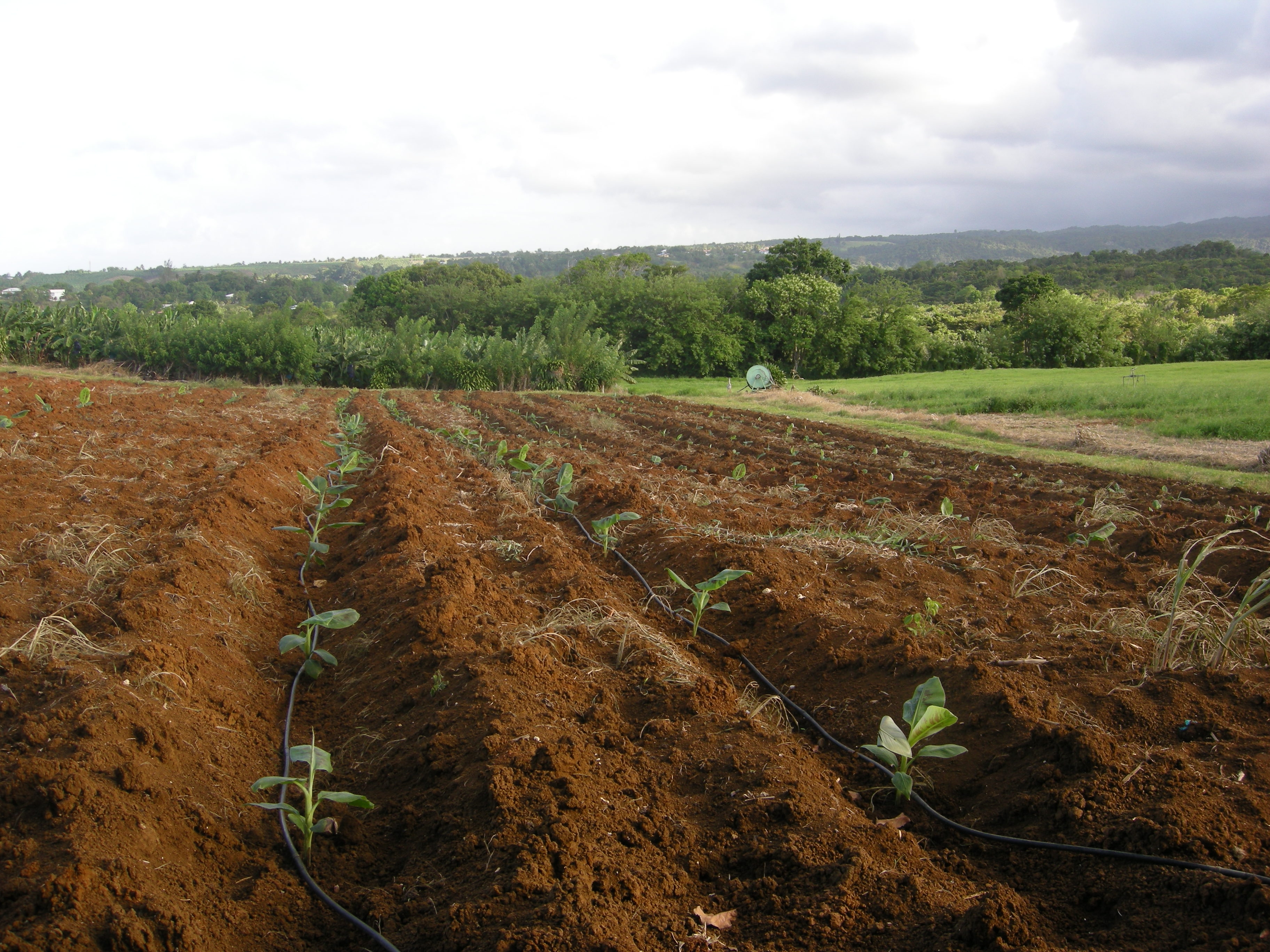 Vitroplants de bananiers fraîchement plantés