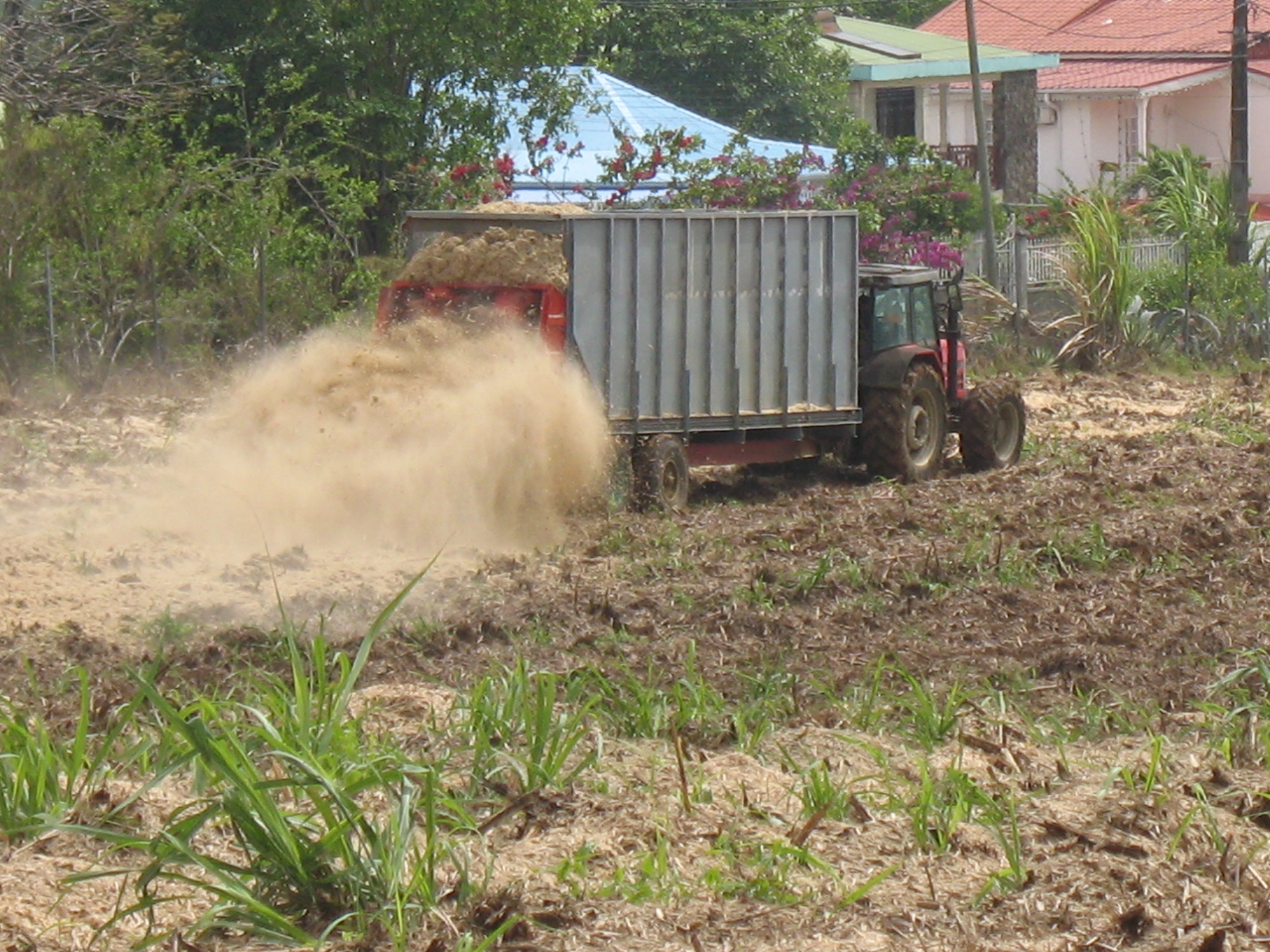 Epandage de bagasse comme fertilisant dans les champs