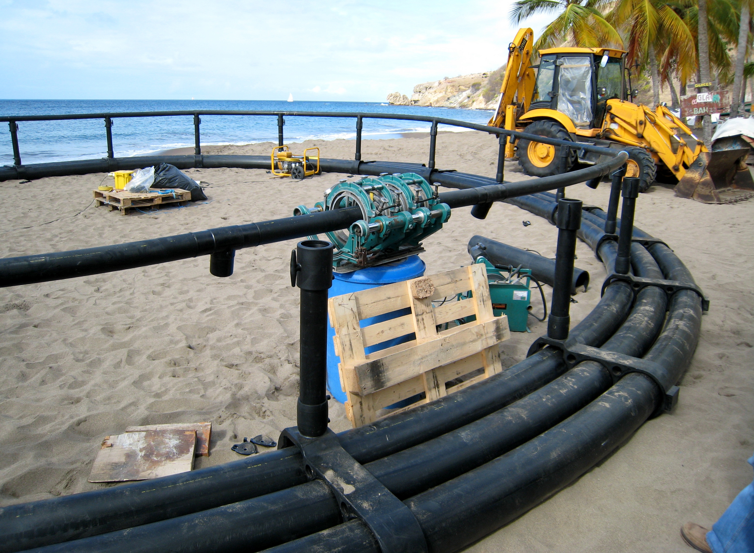 Préparation d'une cage flottante avant mise à l'eau