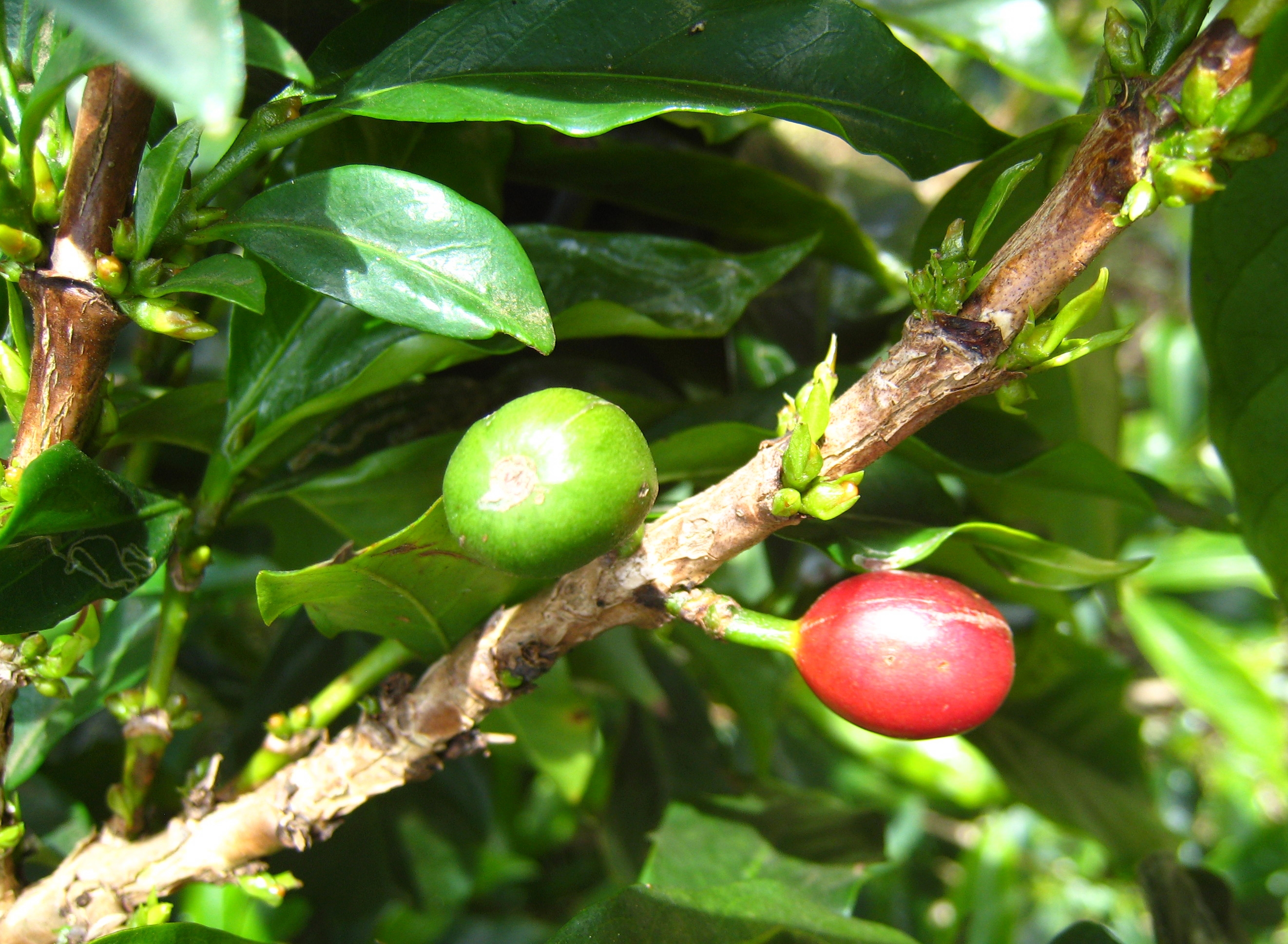Cerises de caféier à différents stade de maturation